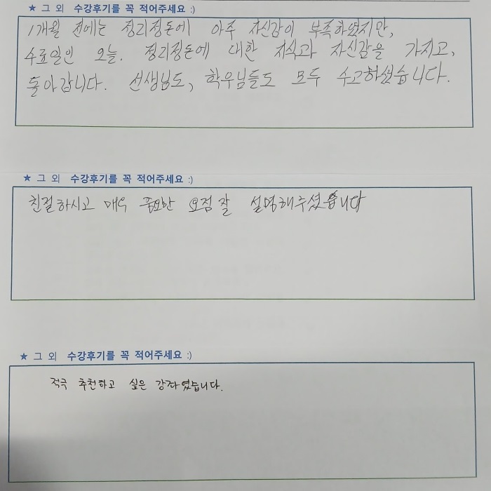 정리수납 전문가 2급 자격취득과정 (26.04.27 종강) 수료식 사진 및 수강후기 입니다